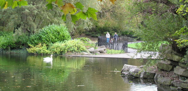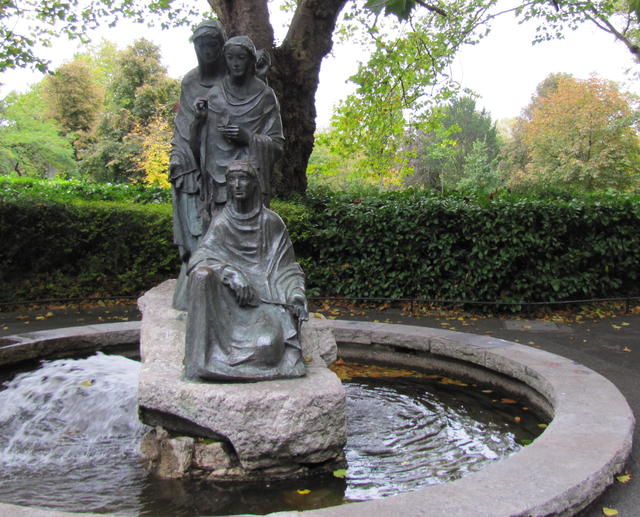 I also took a walk through St. Stephen’s Green, looking for the statue of the Fates. I found it, and also a swan.
