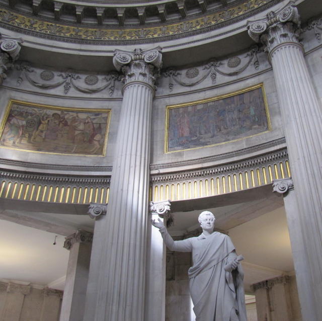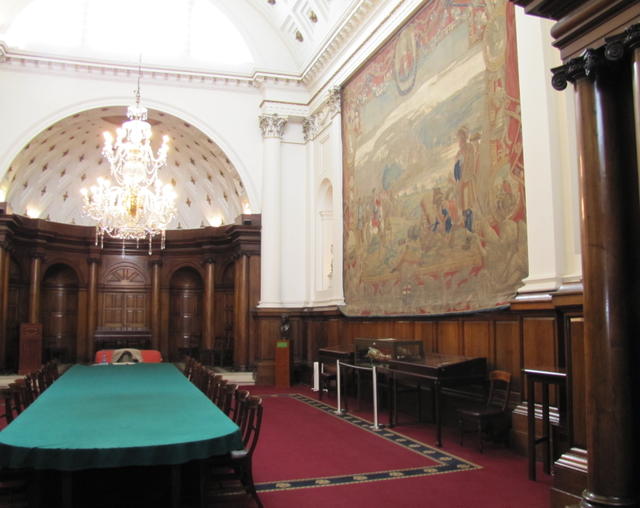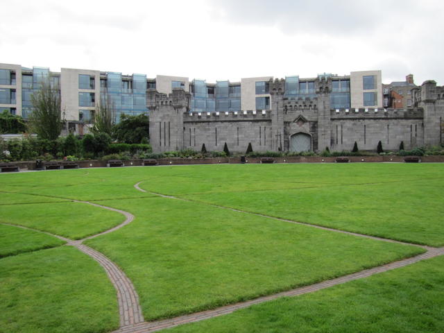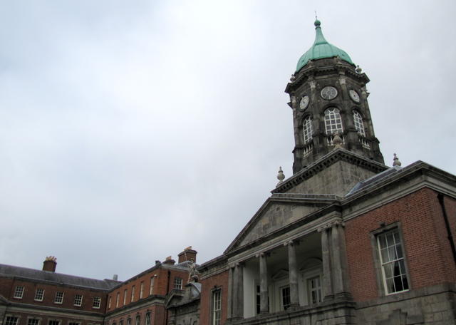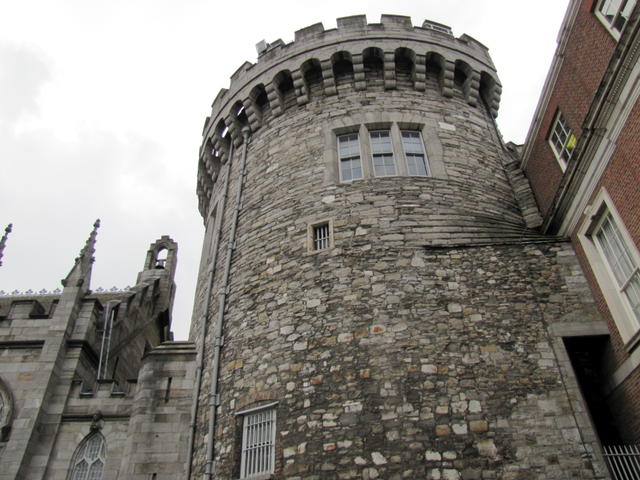 This is the old House of Lords, preserved in the old Parliament building, which is now owned by the Bank of Ireland.One of the narrow cobbled streets in Temple Bar.One of the gates into Dublin Castle.Clock Tower in the main square of Dublin Castle.The Dublin Castle green. The brick paths make a celtic knot design inspired by swimming river eels. The building is the Coach House, a fake wall and house erected so that Queen Victoria would not have to look out on the city itself.This tower is the only surviving part of the original castle, built by King John.The organ loft in the Chapel Royal of Dublin Castle.Statue of Daniel O’Connell and historical friezes in Dublin City Hall.Christchurch Cathedral