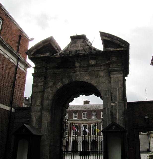 The Brazen Head, said to be the oldest pub in Dublin. We didn’t stop to look at it, but when I saw it, I needed to take a picture, because of the legend of how it got its name.A section of the original city wall, with one of the original gates. Opened onto Cook Street, where cooking was done, because of laws against open fires within the city walls.