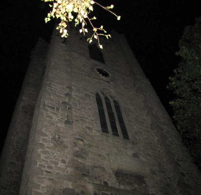 Beyond the gate, in the dark, is what we were told was the Haunted Stair. This is where the best ghost stories of the night came out, as we were standing in the dark by a medieval stairway beside a sinister-looking church.