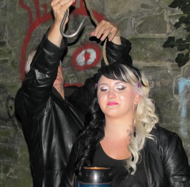 Nick demonstrates bodysnatching using a hook and a very brave volunteer.