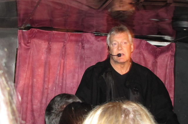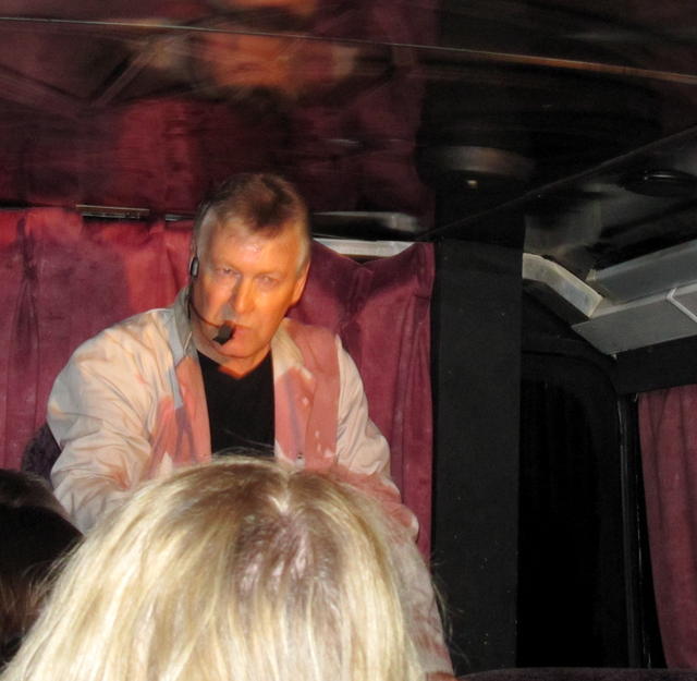 As the bus drove through the city, we stopped at various buildings to hear about their ghosts, and that was good, but the highlights were the two times we got off the bus.