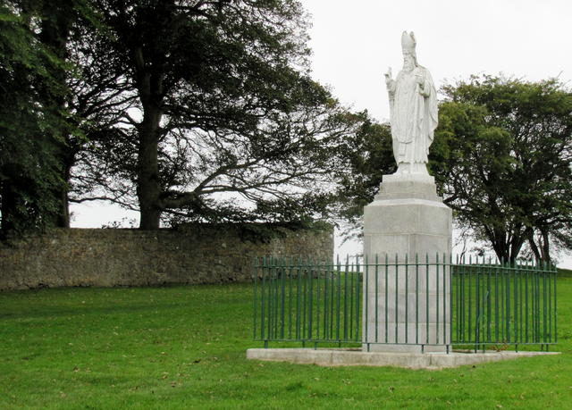 The statue of St. Patrick by the path leading up to the Hill of Tara.The gate to the churchyard, through which you need to pass to get to the hill, is locked. You have to squeeze through a little notch at the top of some stairs in the churchyard wall.